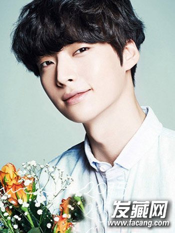 很有养眼的花美男气质的一款韩国男生发型,乌黑的短发莹亮,韩式烫发设计打造出微微卷翘的发丝,很是清新减龄。