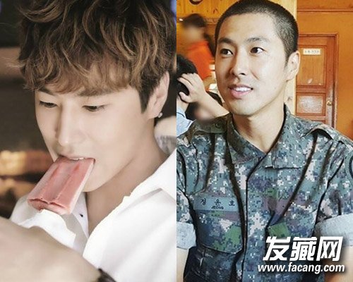 近日,韩星郑允浩入伍造型曝光,剪了寸头的之后的看起来小了好多岁。作为男团东方神起的队长,允浩不光舞跳得好,脸也长得帅,以前留着时髦的短卷发也是花美男一枚呢。
