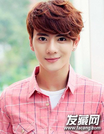很清爽的一款男生短发纹理烫发发型,帅气的斜刘海短发搭配上时尚的黄棕色的染发颜色不仅时尚而且有气质感,整个造型颇显帅气,很有校园文艺男生范。