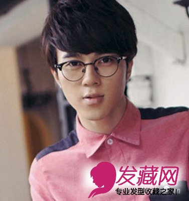 亲切柔和的优雅男生发型,给人感觉文静知性,柔顺的发丝,紧贴额头,红色挑染,造型更显时尚,男生们都合适的眼镜男孩造型。