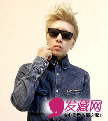 金黄色的个性男生,向上的竖立头发,做出蓬松的效果,露出额头的设计,配搭墨镜,更潮流帅气,朋克的动感男孩。