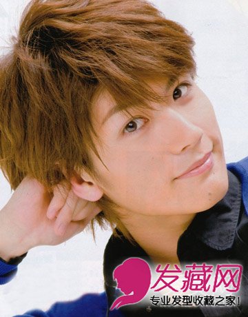 阳光的笑容,忧郁的眼神,亮色的亚麻色头发凸显阳光率真男孩气息,蓬蓬的烫发造型感十足。