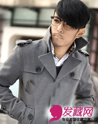韩范的男生直发,黑色的头发并不夸张,但刘海的斜切处理搭配眼镜,个性潮流的艺术男生。
