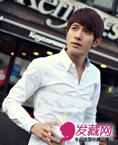 精英型男,颜色与刘海是此款男生直发发型的亮点,标准的头发造型,有拉长脸颊的作用。