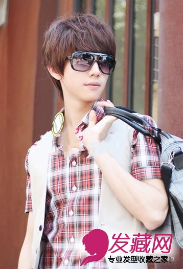 长刘海的这款男生发型,用发蜡把发丝网上搓整理出纹理,时尚的酒红色染发,大方的帅气形象立即凸显出来了。