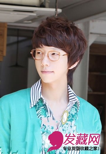 韩式纹理烫发型,染上栗色的发色,显得很自然大气,没有分线的刘海能很好的掩盖额头及拉长脸部的长度,后重感的鬓角很服帖很有美型,整款的造型比较时尚阳光。非常适合年轻一代的职场男生。