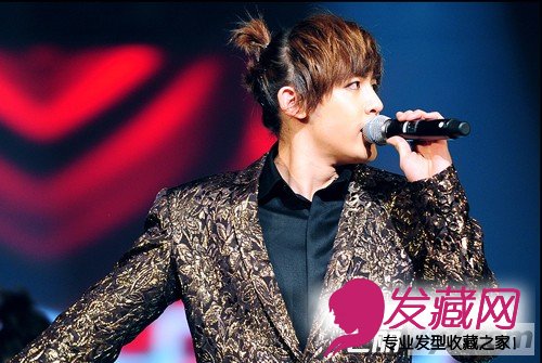 小编点评:2PM尼坤很少见的辫子发型,留出的平刘海修饰额头,将后面的头发扎成丸子,干净利落又个性的男生扎发发型。