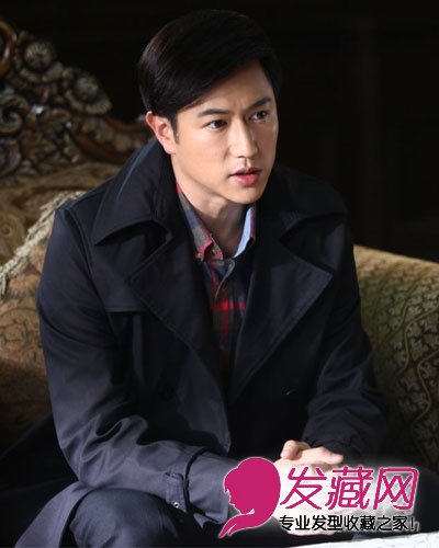 利落的发型配上深蓝色的风衣内搭格子衬衫,很有帅气儒雅的感觉。