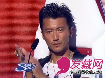 这是一款非常有酷帅的一个露额的板寸头,不长的发型吹直,显得谢霆锋的五官异常的帅气。