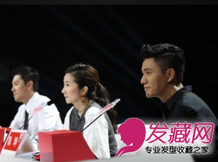 陈坤两边的头发,有明显的分界线,刘海部分稍微吹出一个弧形,也很好看喔。