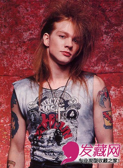 这是花轮头发型的改良,两边都是长头发,但是依然保留花轮头的鲜明特点,把头发吹到一边,并且进行挑染,凌乱中有一种不屑的帅气。