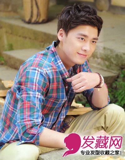 简单的微烫效果的清新短发发型,倍添时尚帅气,格子衬衫将国民校草的独特魅力展现的淋漓尽致。