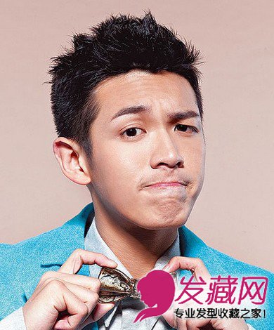 因为那些年走红的柯震东这款清爽帅气的露额发型,大部分头发集中在中间,搭配搞怪的表情,显得帅气十足。