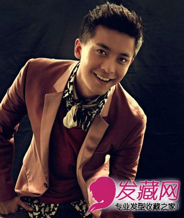 微卷而不凌乱的发型,配上深棕的染发发色,刘海完全向上打,温和的笑容将一个潮流型男的魅力完美呈现,非常的平易近人。