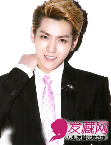 发型解析:吴亦凡身材修长,加上完美的长相和气质,是众多女生心中的男神,侧分短发,棕色调,稳重中散发时尚气息,西装都市精英范。