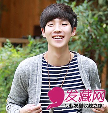 很适合娃娃脸男生的一款短发发型,不仅简单而且有个性。一款类似于波波头的造型,微斜的刘海发型 。单眼皮的男生可以一试哦,这样看起来不仅显呆萌而且显出男生憨厚单纯的一面。
