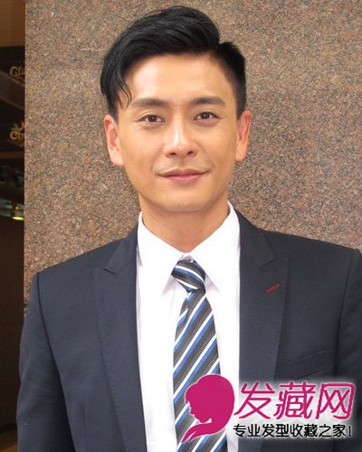 侧分的西装头带来一种成熟的魅力,额角几丝卷曲的刘海减少了发型的严肃感。