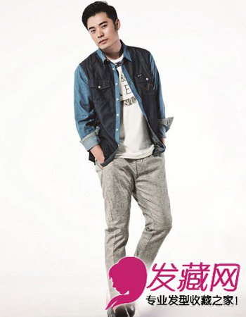 无刘海的男士西装头发型设计,很好的展现一张俊俏饱满的五官,再加上乌黑健康的发丝颜色搭配,更完美彰显陈赫的时尚气息。