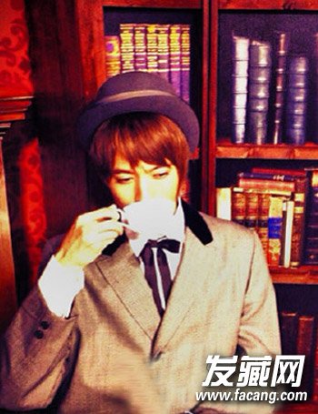 穿着简洁西装的松岛庄汰,清新的刘海发型,两颊长鬓发增加忧郁气息,戴小礼帽潮范十足。