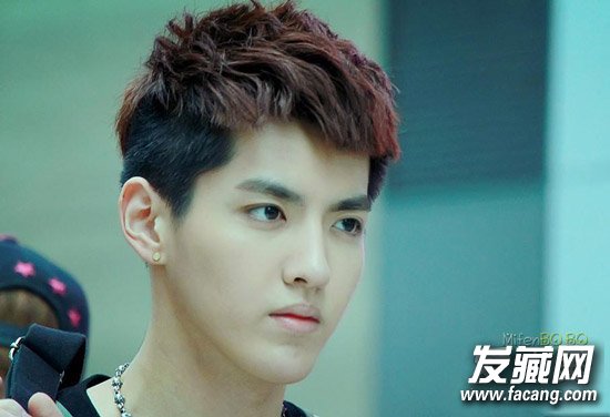 吴亦凡发型图片,一款染色西瓜皮刘海,帅气时尚,极短的发型显得清爽阳光。