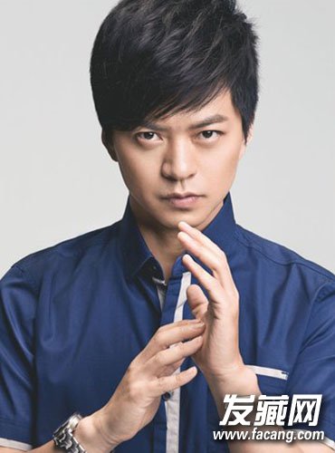 斜分的刘海遮住额头,简练短发显得很时尚有型。