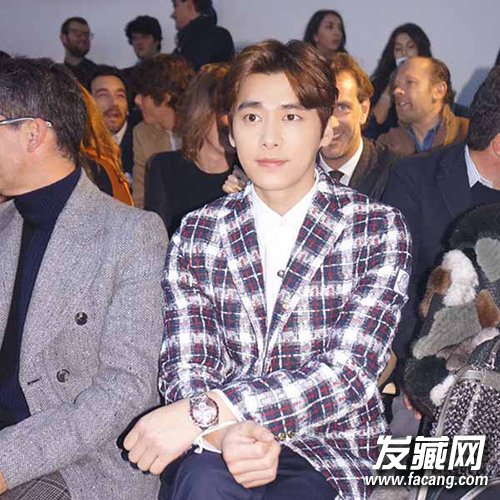 偏中分复古的男士短发,卷度饱满的刘海稍掩额头,却遮挡不住李易峰的气质。