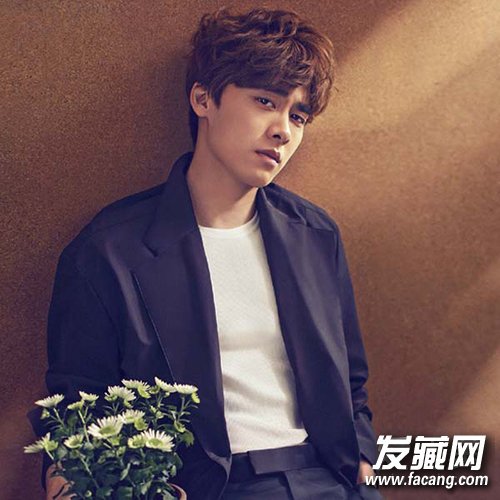 棕色的时尚短卷发,忧郁的小眼神,展现美男形象。
