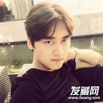 帅气的分头造型,偏分的长刘海两边分留,有点大背头的感觉,一身黑衣可爱萌萌哒。