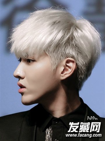 吴亦凡染发发型,银白色染发变身动漫的王子,蓬松刘海造型很显质感,没想到男神即使染发发质也超好。