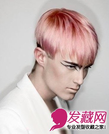 粉红色染发艳丽妩媚,碎发刘海的波波头随意慵懒,脑后铲发设计清爽个性,非常具有男人魅力。