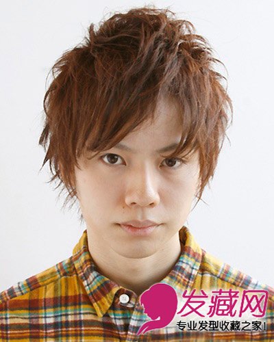 这款淡褐色随意式斜刘海短卷发把男生的五官显得精致可爱,真是让女生也心生羡慕这样的可爱脸庞,这款淡褐色随意式斜刘海短卷发比较适合可爱王子型男生。