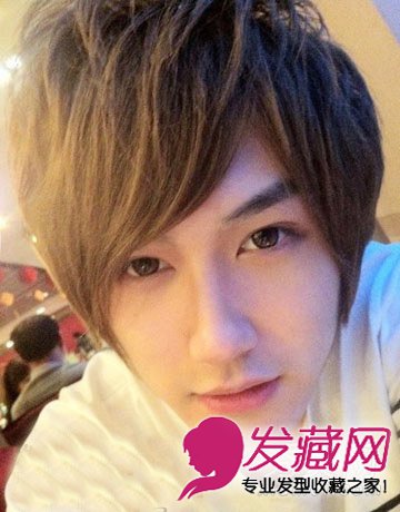 栗色是一款在韩国非常受宠的色调,斜刘海短发修饰长脸型,略微弄蓬一些更好好看,凸显花美男魅力。