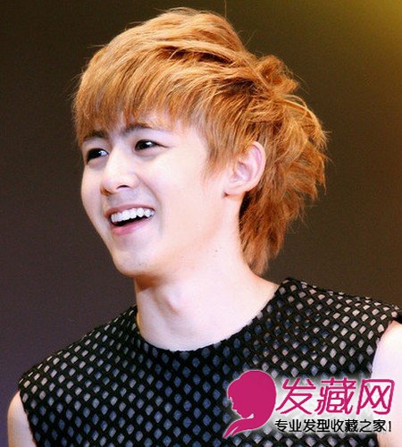 尼坤这款发型,薄薄的齐刘海凸显了完美脸型,而时尚的金黄色染色,凸显了白皙的皮肤。