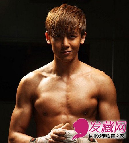 较长的刘海稍微遮住了眼睛,给人神秘型男的感觉。