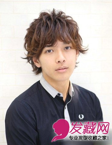 可爱的卷发使用定型产品住处硬朗的线条,发尾部分外翘让男生多了一份俏皮活力,同时不失时尚的可爱感觉。