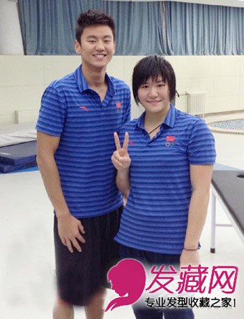 穿着运动装的宁泽涛与叶诗文合照,都是萌萌哒。