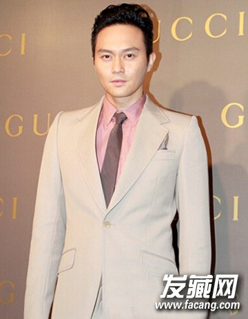 一款男士明星流行的时尚莫西干头发型,再加上无刘海的设计,更好的凸显了一张双气脸庞,显得十分好看,更彰显张智霖的绅士风度。