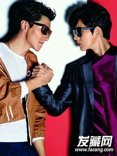 这组照片里的两人紧握手,发型都用发胶定型,加上佩戴墨镜,时尚酷炫到没朋友。