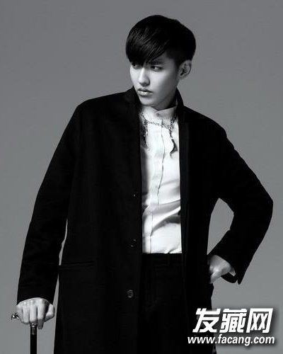 黑白色调下,黑色的服饰,飞扬的刘海,黑发显霸气沉静魅力十足