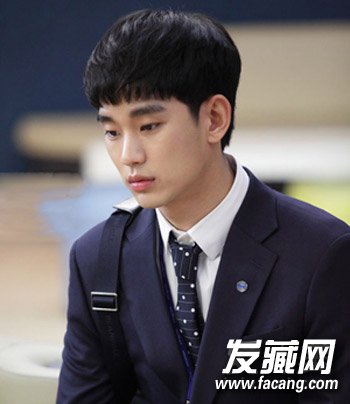清爽的韩国男生发型设计,略带蘑菇头效果的韩式齐刘海短发清新帅气,简单的短发造型搭配简洁的深色系西装就很有职场气息。