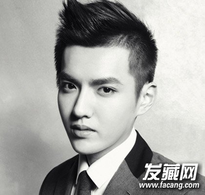 吴亦凡的这款飞机头完美地突出了立体的五官和精致的脸型,两鬓修剪得清爽干净,刘海向后上方竖起后偏一侧,具有不平衡的美感。