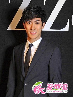 一款非常典型的纹理烫发型,覆盖式的修剪在经过纹理烫的打造下,呈现出一种自然蓬松的效果,斜刘海的设计也有着修饰脸型的作用,搭配西装,潮男一个!