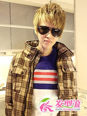一头抢眼的染发颜色是这款发型的主要亮点,微微有些凌乱的秀发在发顶部分制造出蓬松的效果!这款具有时尚潮流的发型让整体呈现出一种类似于非主流发型的元素在内,推荐给长脸的男生们来打造哦!