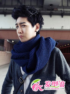 一款简约的韩式发型,漂亮自然的黑色染发颜色为男生带出了青春阳光的气息!独特的修剪,让鬓角与发顶秀发形成两种截然不同的样式,利用冷风以及发蜡制造出飞机头也是一种不错的新方法,搭配蓝色围巾以及开衫,阳光型男一个!