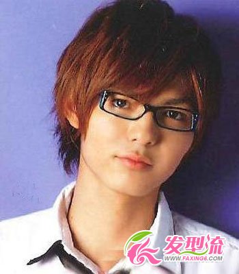 这款少男系发型有着典型的日系风格。头发烫出蓬松效果,层次分明,充满了青春活力和蓬勃朝气。深栗色的染发,让发型更显时尚味儿。加上一副黑框学生眼镜,打造乖乖男的形象。
