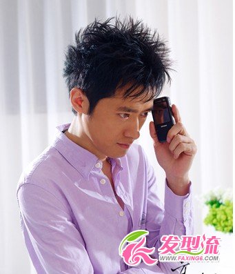 利用发蜡做出的造型感,让发丝根根分明,搭配紫色衬衫,衣领微微敞开,呈现出性感的魅惑力,很是吸引人心。