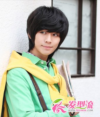 第一眼看上去,属于比较厚重的发型!小编推荐给发量多和有点圆脸的男生来打造!覆盖式的斜刘海设计和脑后长长的发尾是关键,能立马修饰圆脸的效果哦!鬓角打造出V字的形状后,将发尾的部分细碎长长的留出,造成一个鲜明的对比后就能立马瘦脸啦!