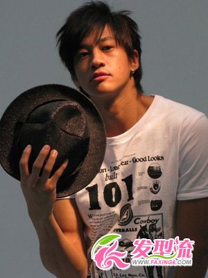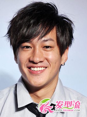 洁白的牙齿与自然黑色的头发形成了黑白配的搭配,头发利用较好的烫发技巧打造出自然蓬松的效果,让头部看上去更加的饱满!斜分的刘海设计无形遮挡了他较长的脸型!