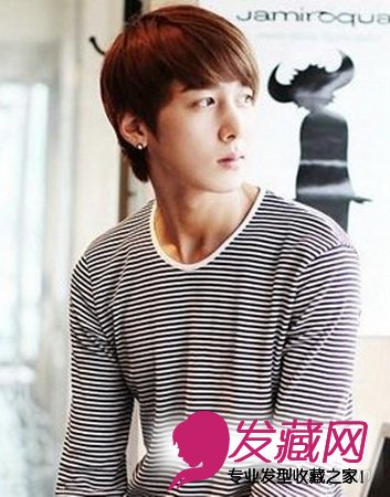 这款韩式发型在弧度方面花了很多心思。柔软的发丝,染上流行的栗子色发色,更加抢眼,闪着迷人的光泽。整个发型有着流畅的线条美感,给人一种非常舒服的感觉。厚重的圆弧刘海,带出男生的可爱,也可以修饰脸型哦!