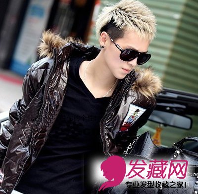 另类时尚的男生短发,竖起的头发先用碎剪的方式修剪,随后用发蜡抓起,亮黄的发色,使发型更帅气抢眼,大方时尚,尤其是耳边的鬓发,剪直发根,打造出清爽大气的街头男孩气息。